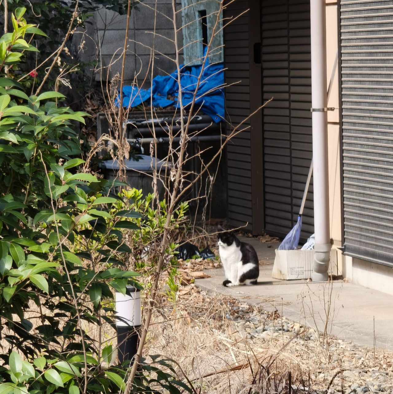 遠くにハチワレ猫ちゃんが。