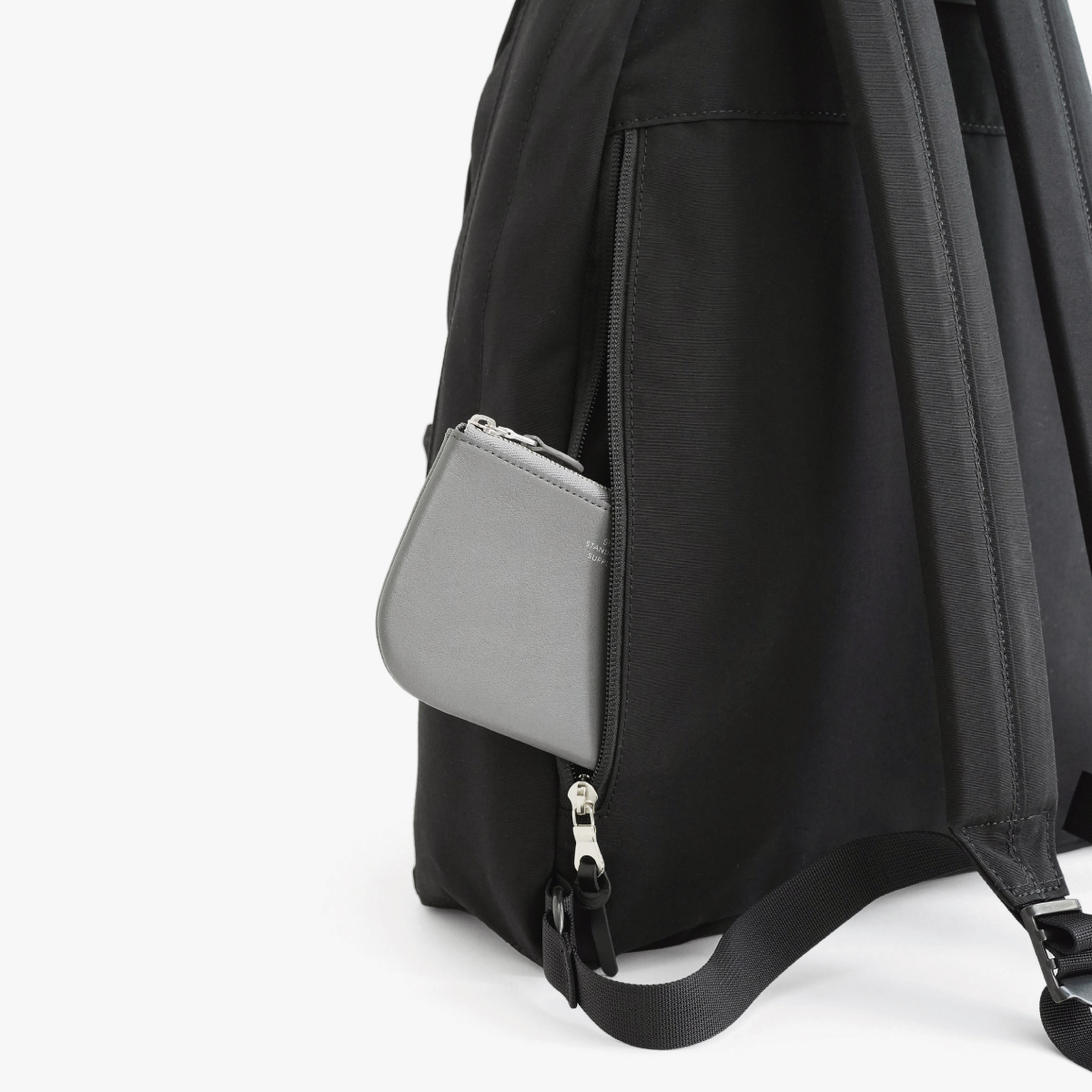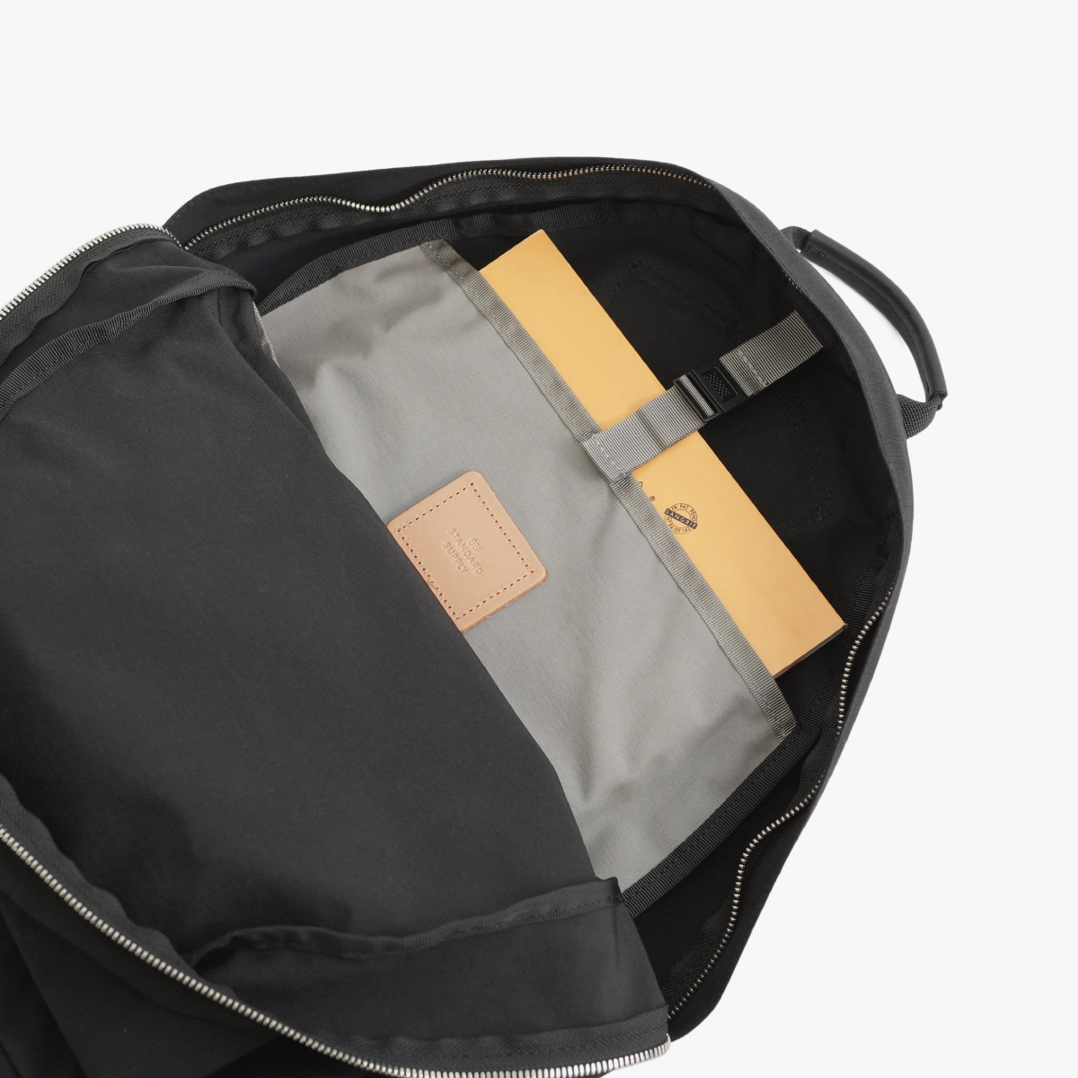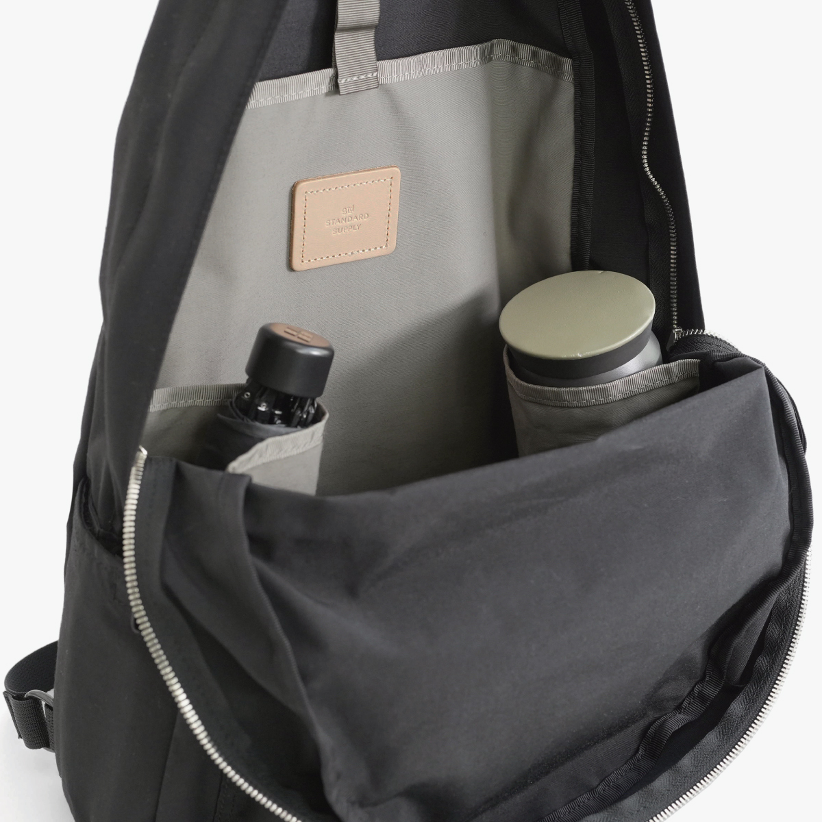 スタンダードサプライのベストセラー「SIMPLICITY / DAILY DAYPACK」をベースに、背面ポケットと内装ボトルホルダーを付けた特別仕様です。メインスペースのポケットは視認性の高いグレーの生地を採用。小物の収納に便利なラウンドポーチもセットになっています。